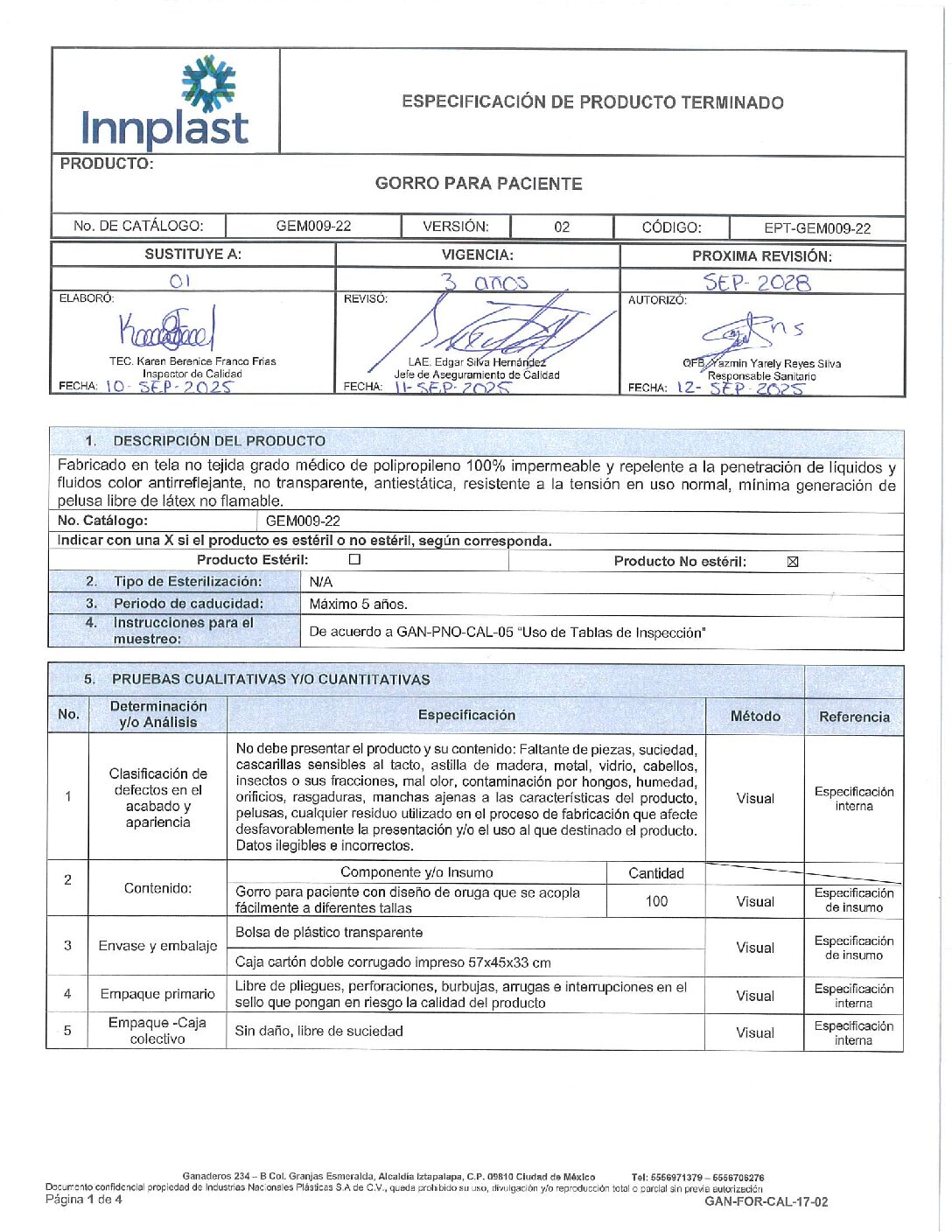 GEM009-22 Gorro Para Paciente