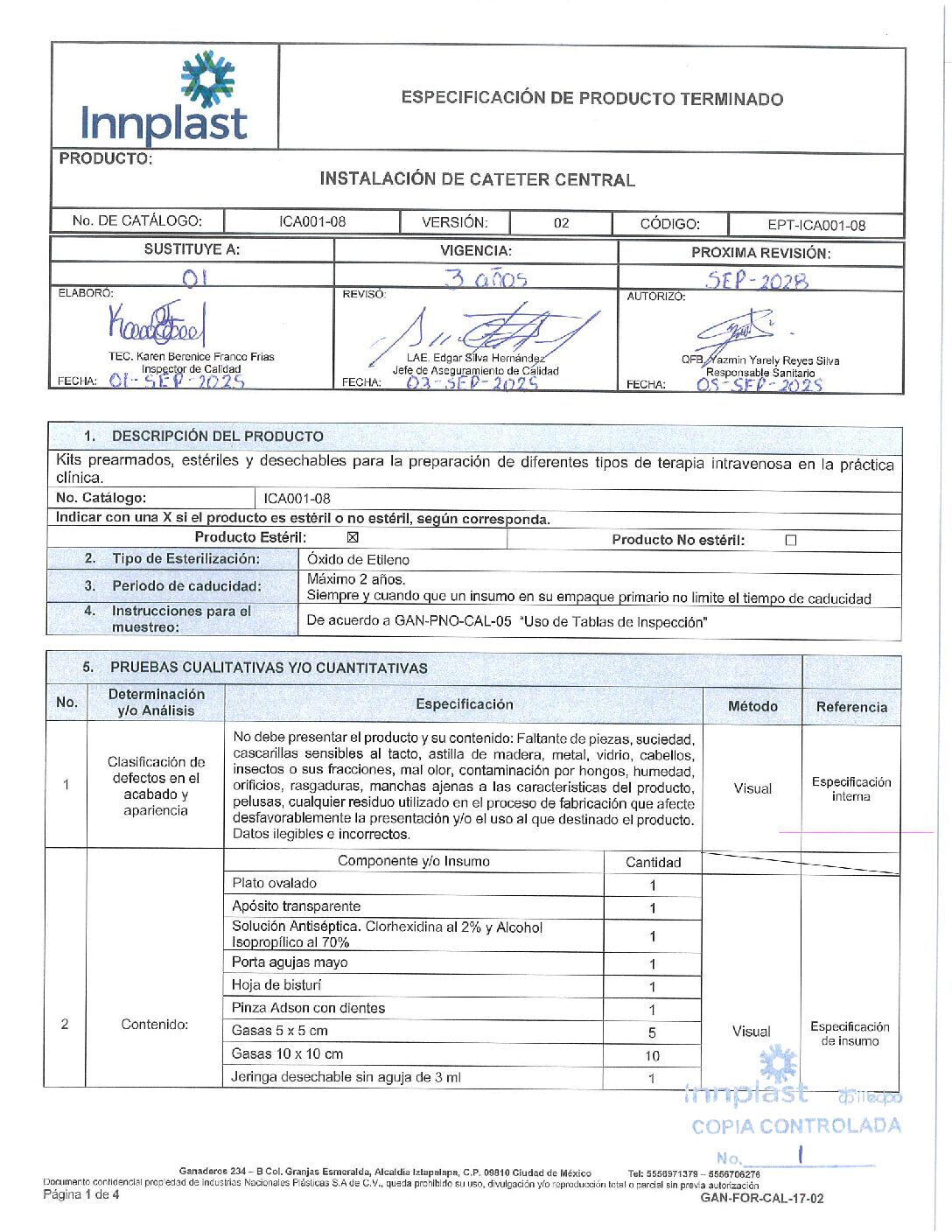 ICA001-08 Instalación de Catéter Central
