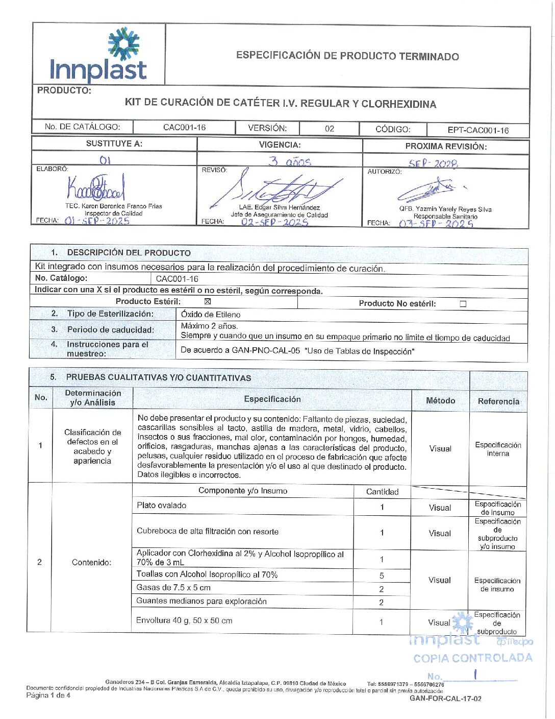 CAC001-16 KIT DE CURACIÓN DE CATETER IV REGULAR Y CLOREXIDINA
