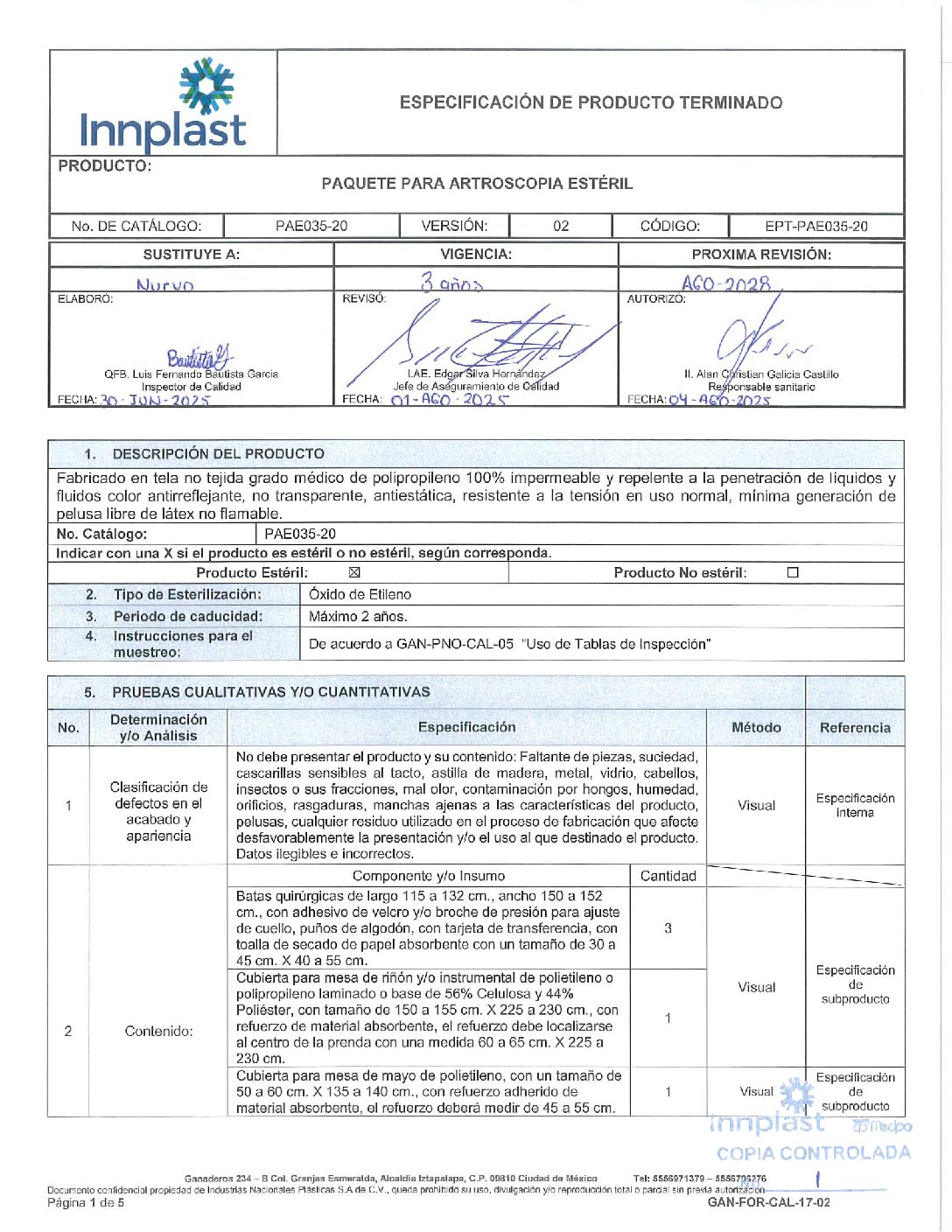 PAE035-20 Paquete Para Artroscopia Estéril