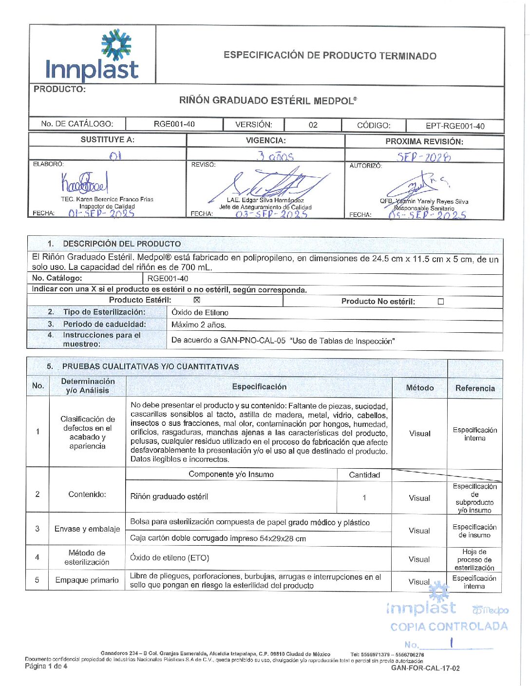 RGE001-40 Riñon Graduado Esteril Medpol