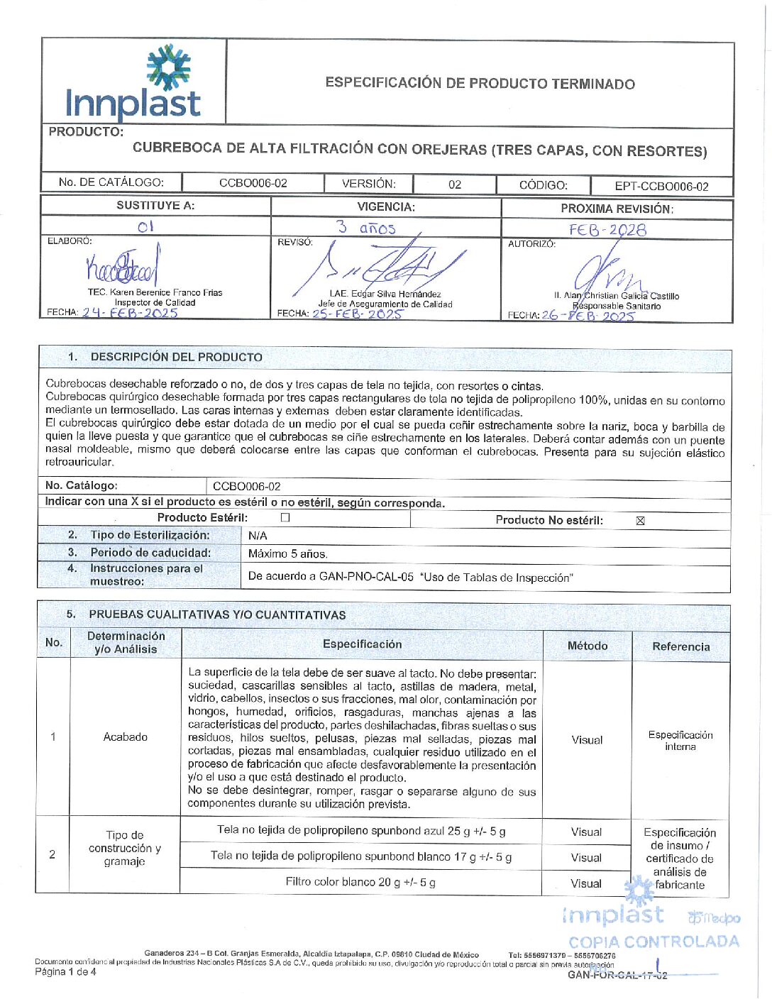 CCBO006-02 Cubrebocas de Alta Filtración Con Orejeras (Tres Capas, Con Resortes)