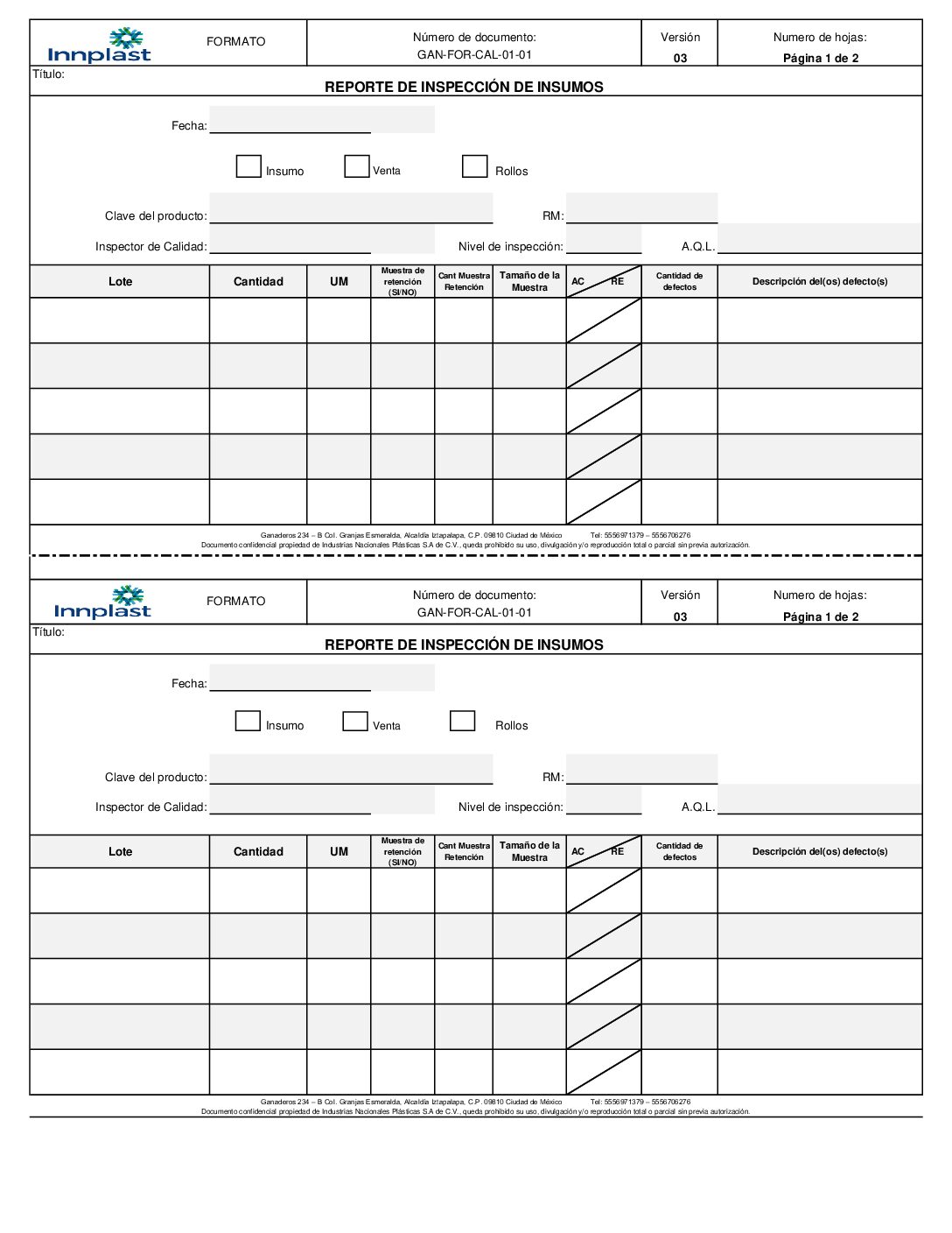 Reporte de inspección de insumos