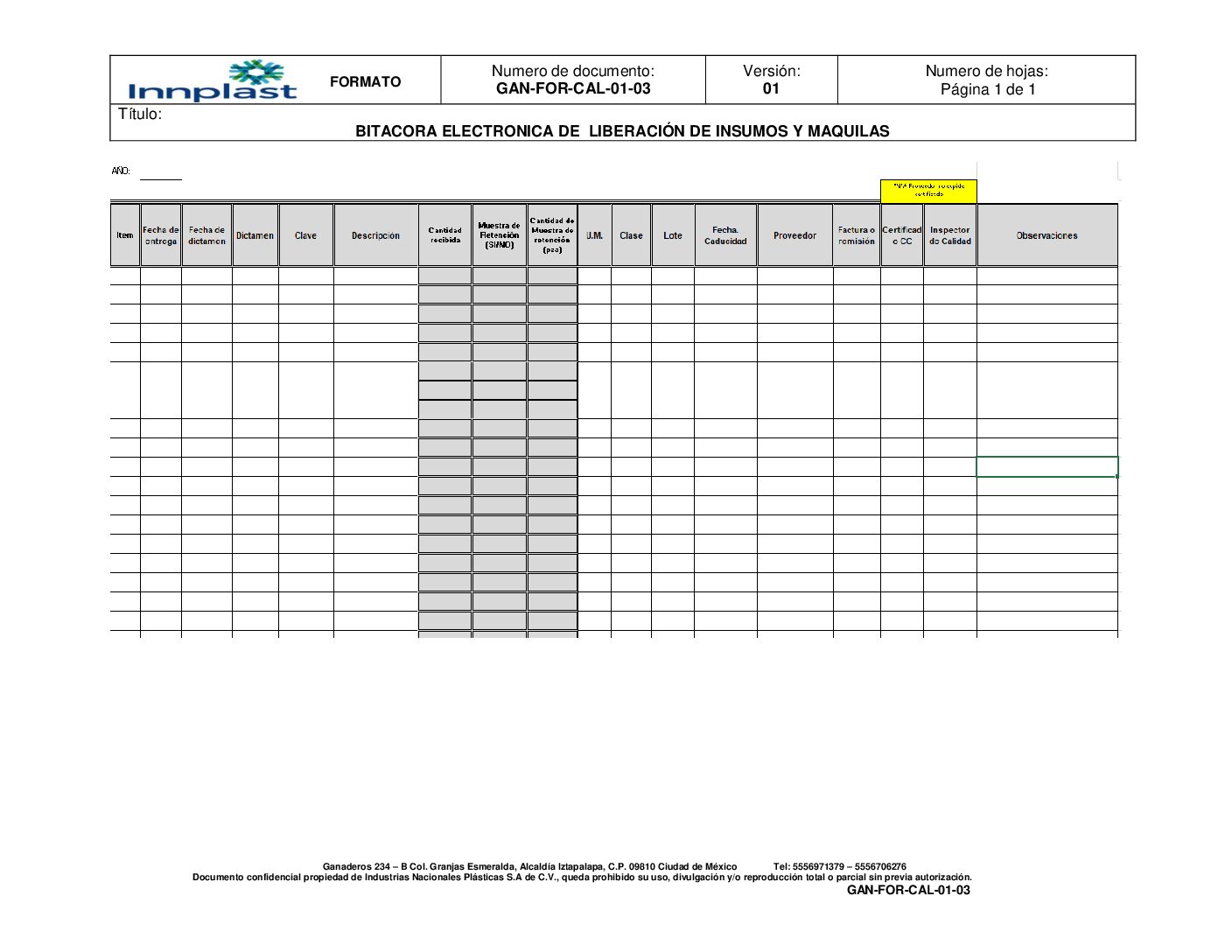 Bitácora electronica de liberación de insumos y maquilas