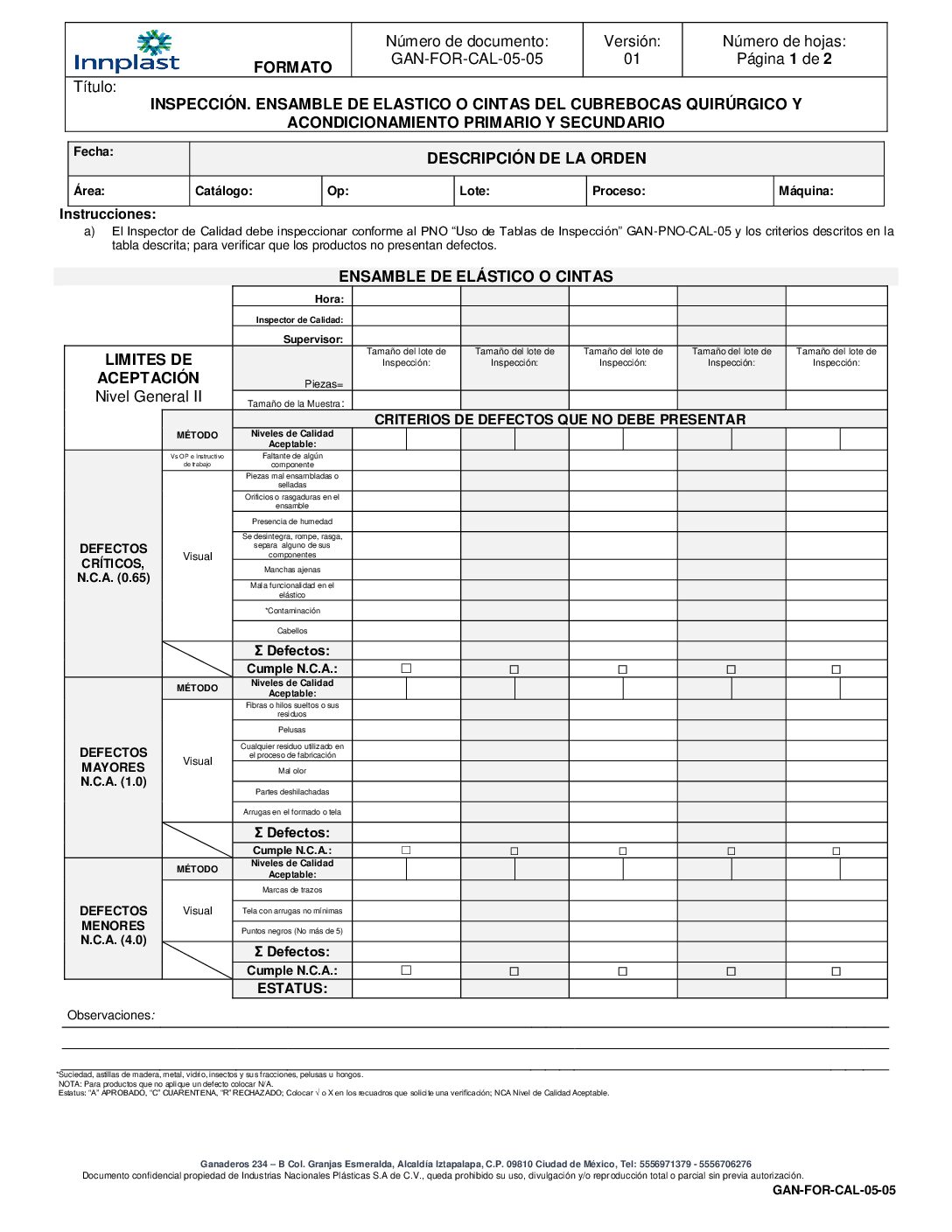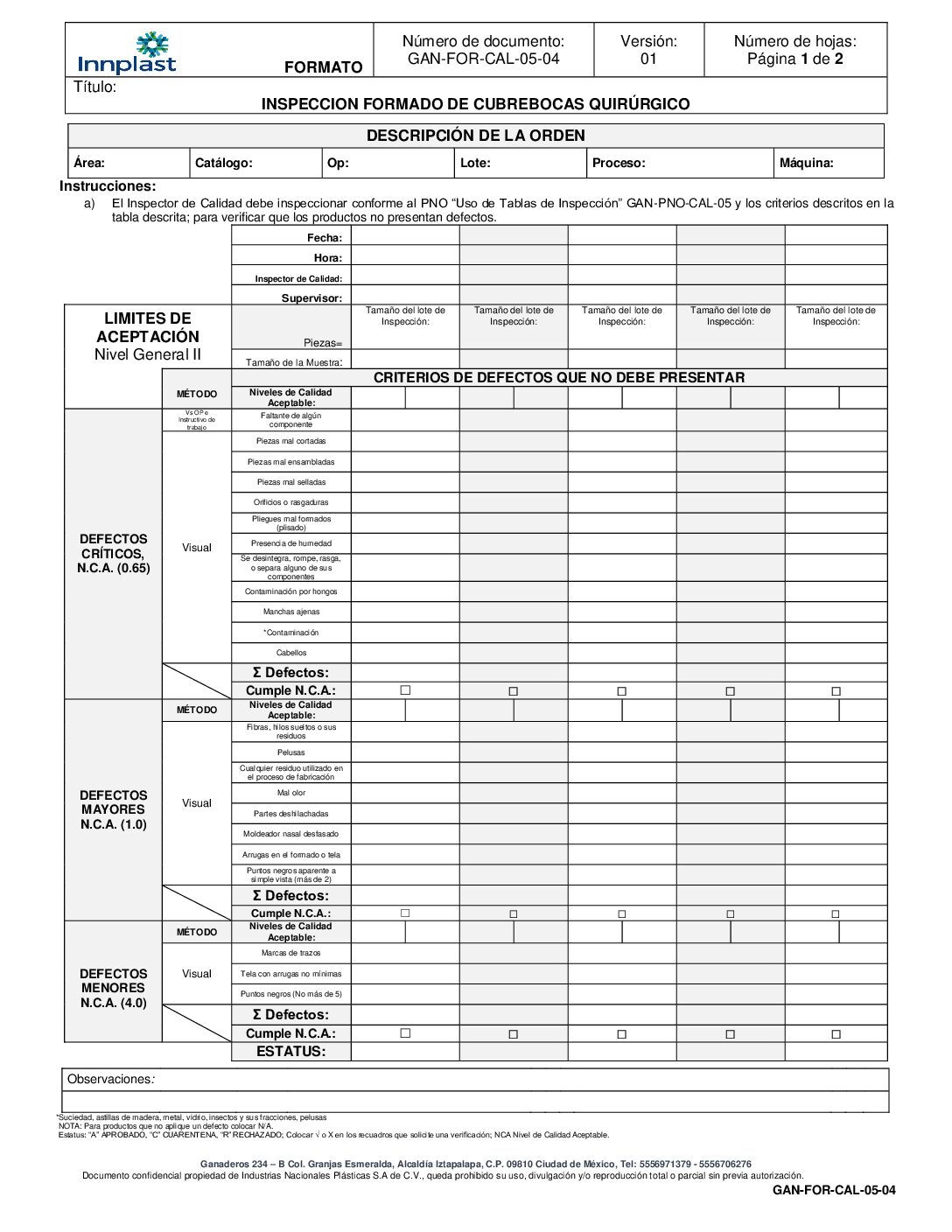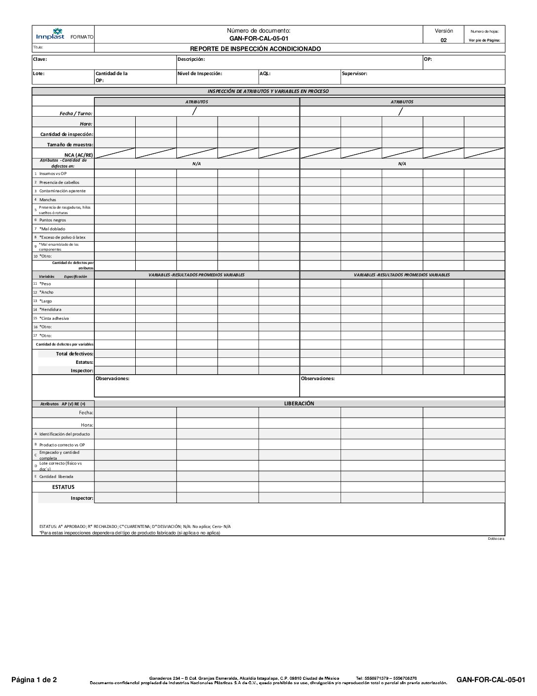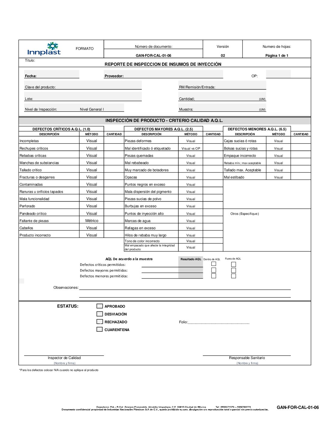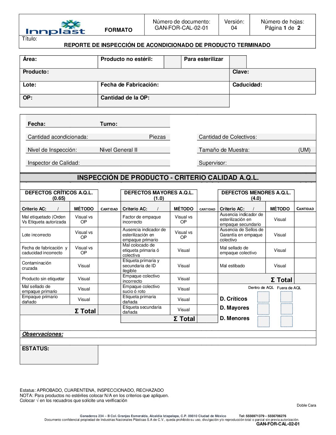 Reporte de inspección de producto terminado