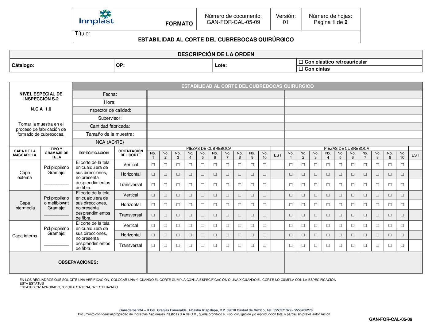 Inspección Formado de Cubrebocas Quirúrgico