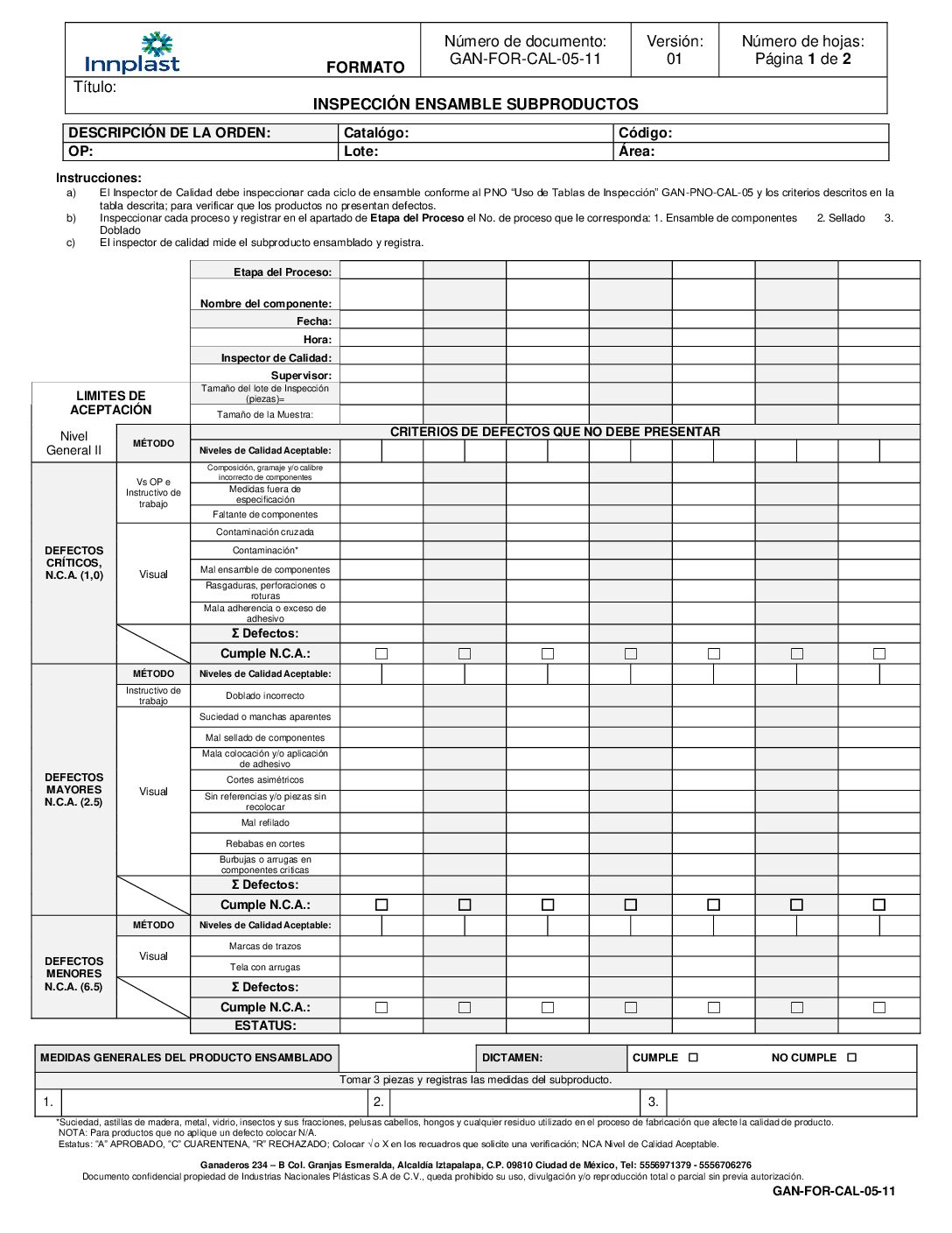 Inspeccion Ensamble de Subproductos
