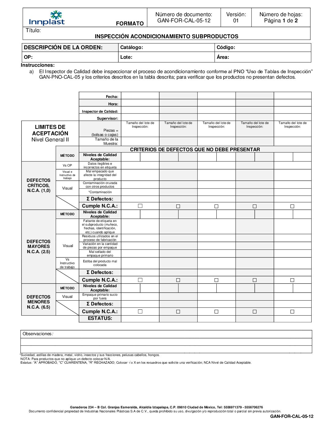 Inspección Acondicionamiento Subproductos