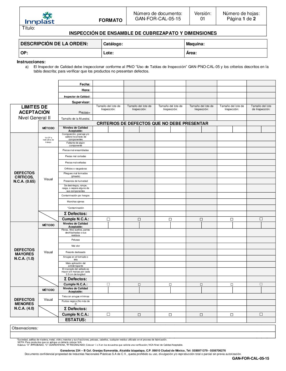 Inspeccion de Ensamble de Cubrezapato y Dimensiones