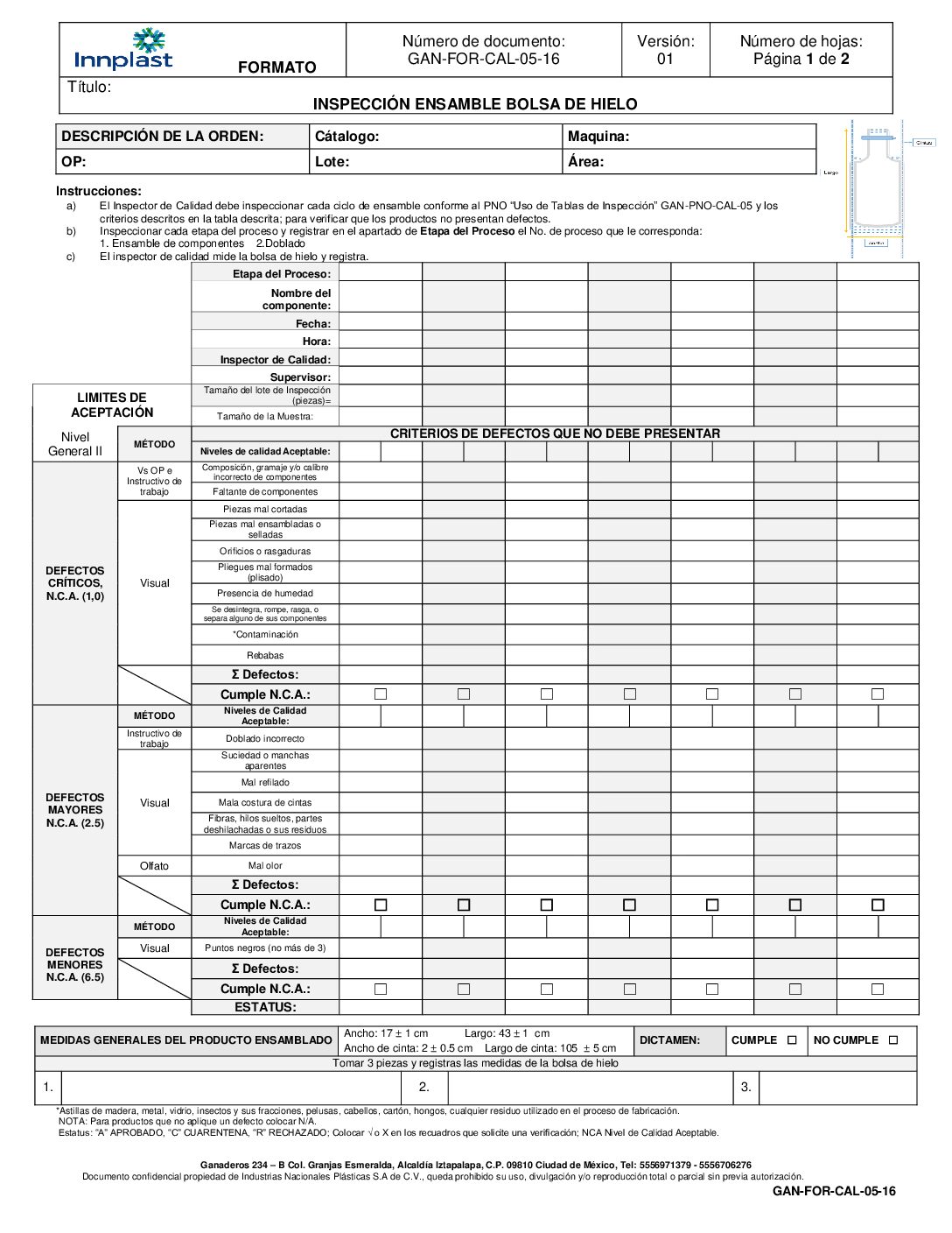 Inspección Ensamble Bolsa de Hielo