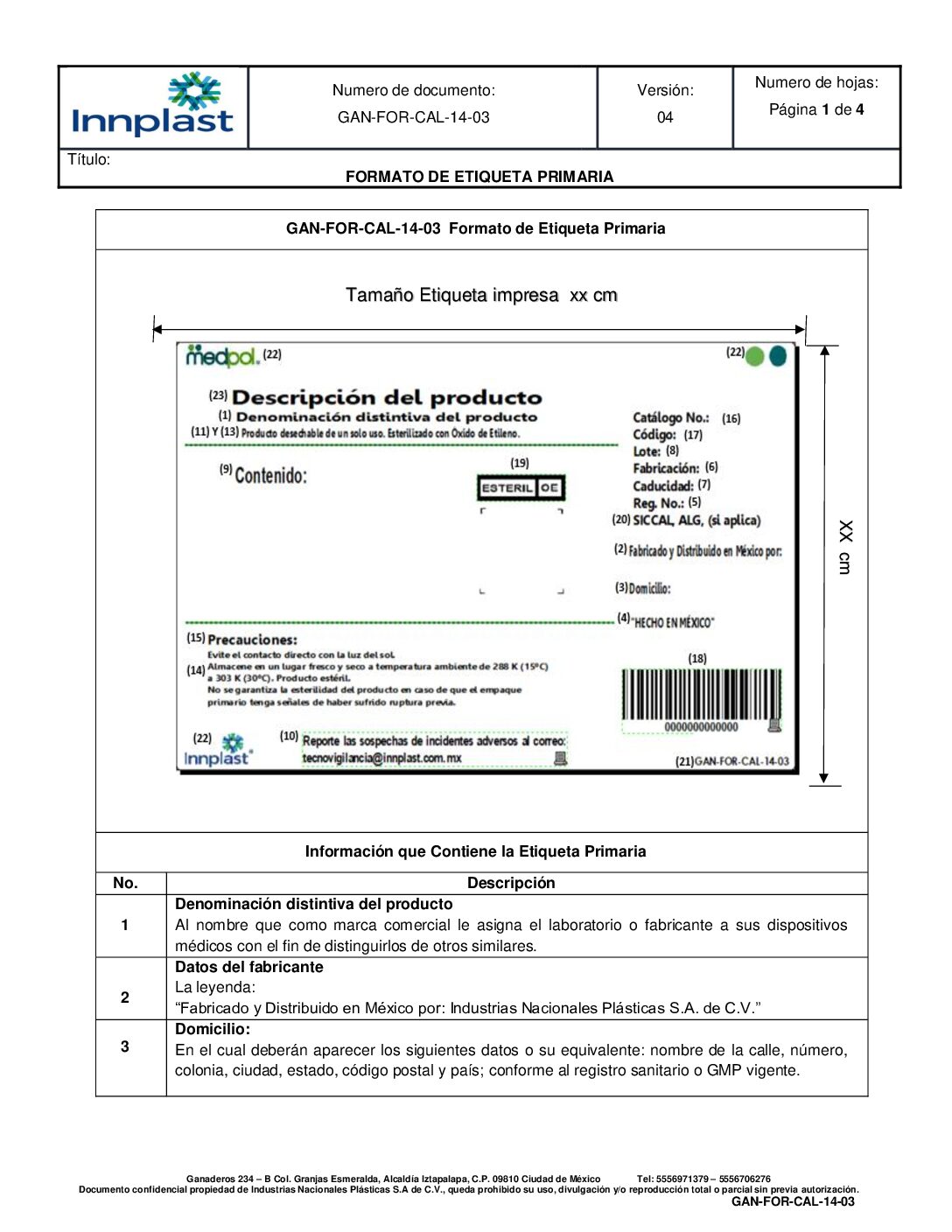 Etiqueta general para producto terminado