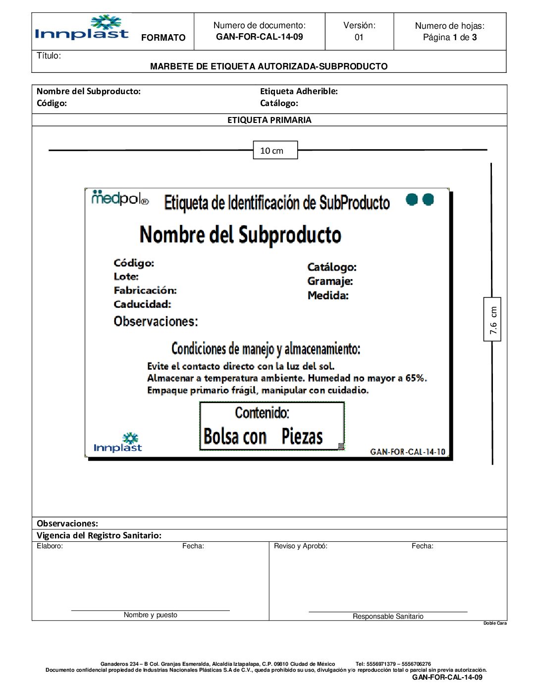 Formato de Etiqueta Subproducto